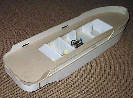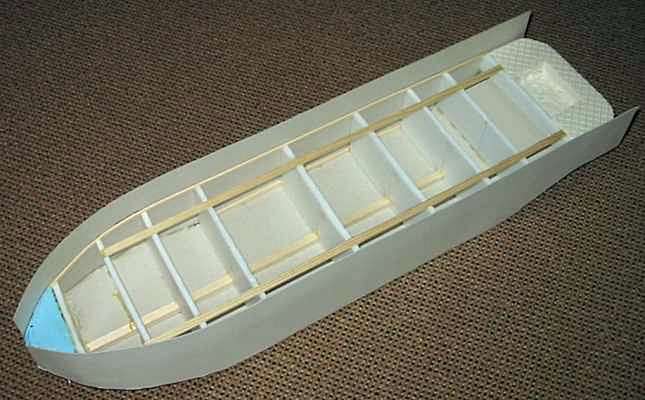 deseti hodinách práce byl trup hotový i se zabudovaným kormidlem a motorem.