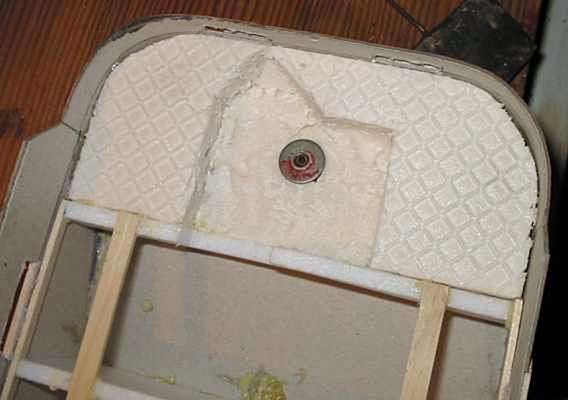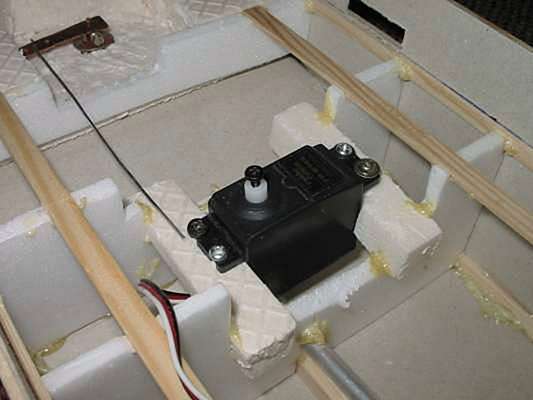 styroporu jsem udělal lože pro servo a bylo hotovo. připojit přijímač a vše