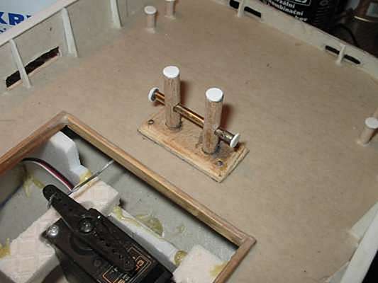 jedno běžné servo. Kormidelní páka byla vyrobena osvědčeným způsobem. Z kostiček
