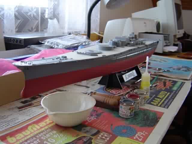 přestože příďová vlna je již znatelná. Obavy z pronikání vody do modelu