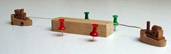 podobě modelu lodě, kterou remorkéry vlečou pomocí vlečných lan po vytyčené