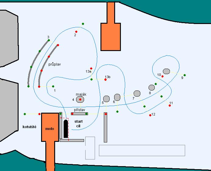 Druhé kolo se pluje v přesně obráceném směru - pozor střídají se i vjezdy přístavu