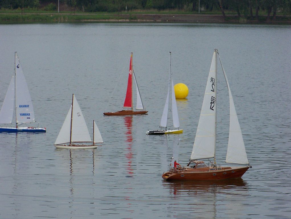 V neděli došlo sice už jen na jednu jízdu, zato to byla ta NEJ. Vrchol trojúhelníku putoval až kamsi do nevidím a na vodu nastoupily plachetnice bez rozdílu tříd. Kvůli různým technickým závadám a nemožnosti ovládat dvě plachetnice naráz se po vodě majestátně prohánělo jen 23 z celkových 28 modelů, ale i to je slušná skupina pro závěrečnou regatu, kdy pár kilometrů najedou nejen plachetnice, ale i jejich majitelé na břehu se pěkně projdou – někteří i proběhnou.