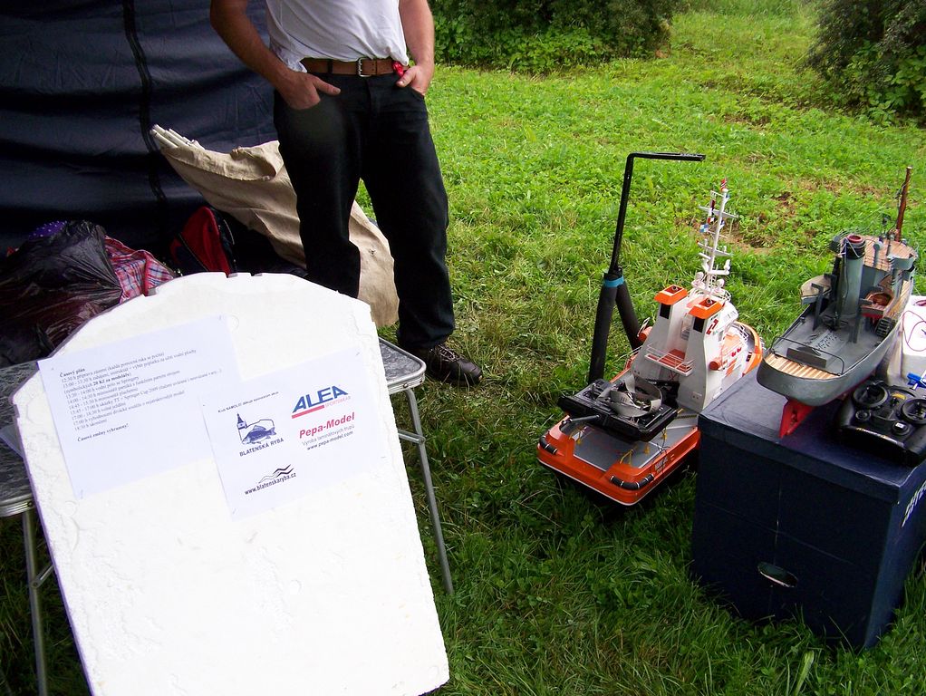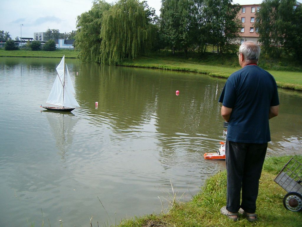 Rád bych poděkoval všem, kteří i za deště předváděli své modely, obzvláště pohled na plachetnice v dešti a bezvětří byl velmi depresivní, ale nezapomínám ani na hrstku diváků, jelikož se připojili k modelářům a rovněž zaplatili symbolických 20,- Kč. Původně to měl být poplatek za přístup k vodě, ale nakonec to byl asi poplatek za zabahněná auta a přírodní sprchu. Ovšem počasí neovlivníme.