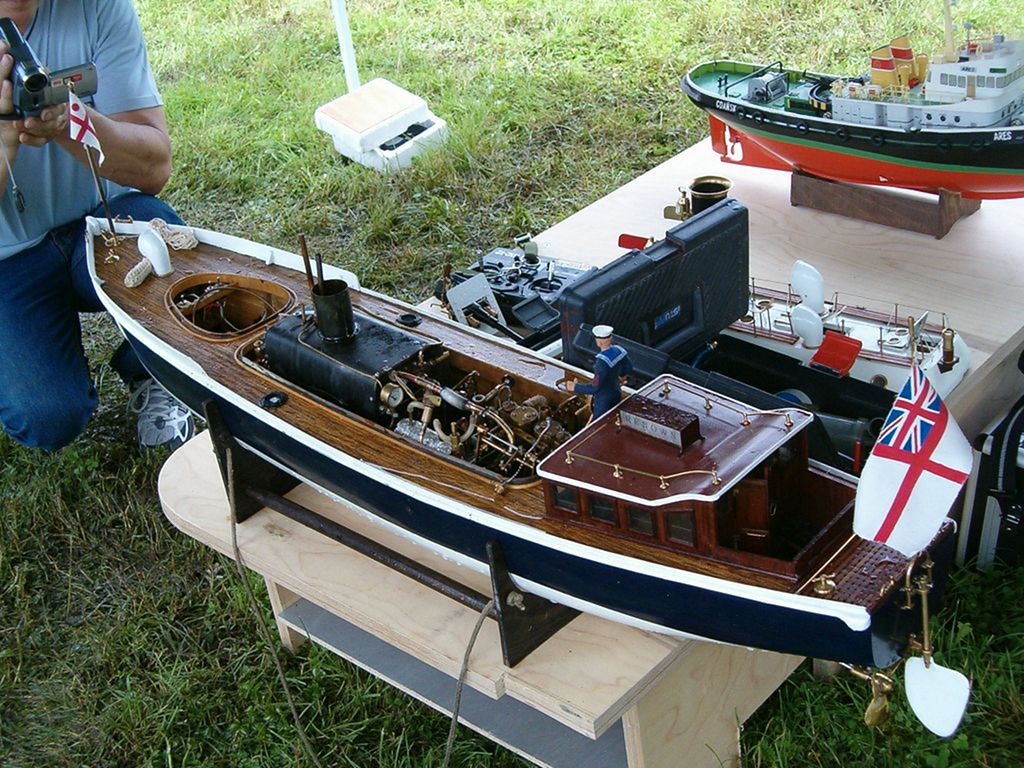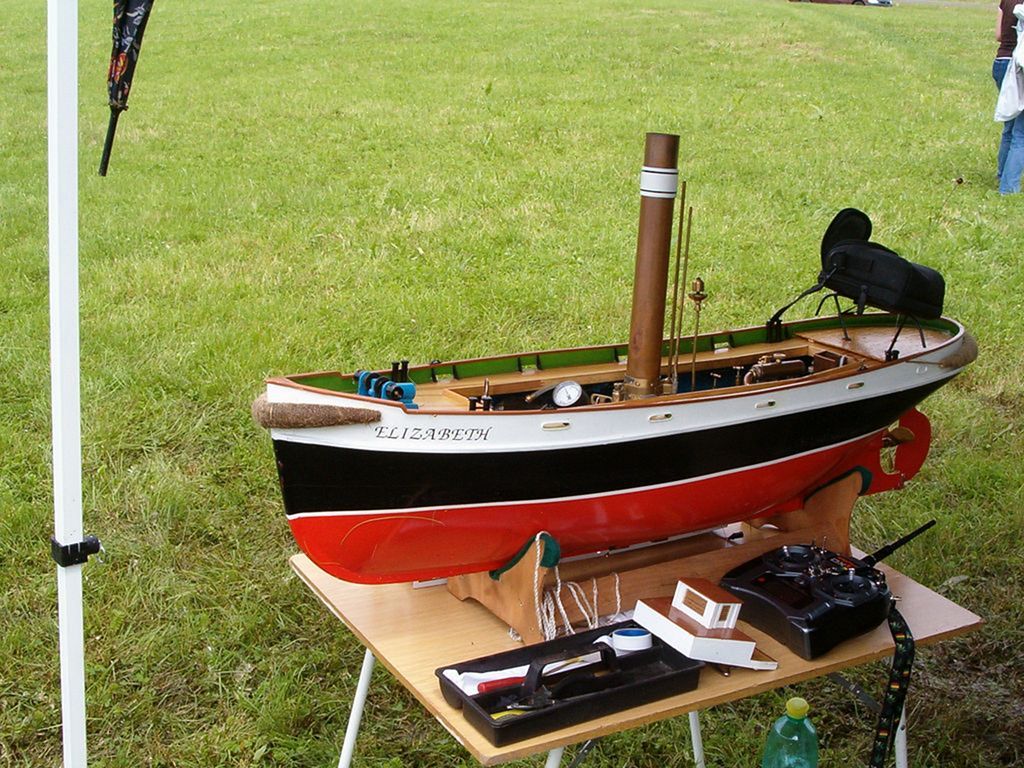 Tolik tedy počasí a nyní k samotnému programu. Vše vypuklo závodem parníků. Než jsme postavili pár bójek, tak už pomalu docházela pára. I tak ještě nejrychlejší parník Elizabeth pana Šrámka stihnul 19 kol za dobu asi 25 minut. Tandem manželů Voráčkových zaznamenal technické potíže, až se pan Voráček vrhnul do hlubin zachraňovat. Než jsem stihnul nabídnout záchrannou loď, tak už byl z vody venku. Sám ujel jen 4 kola, zato drahá polovička rovných 12 kol, než definitivně došla pára. Parník Tomáše Kočího byl úplně poslední, který ze závodu předčasně odstoupil. Do poslední chvíle se sice držel jen těsně za vítězem, nicméně zaznamenal nějaké problémy s 2,4 GHz na své palubě a plavbu ukončil se 17 koly.