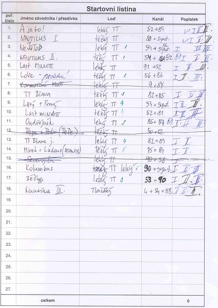 zápisy soutěžních plaveb