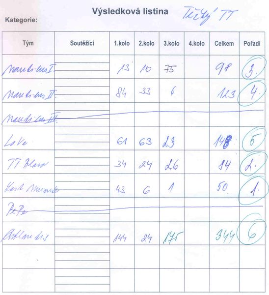 Výsledková listina TTC 2008