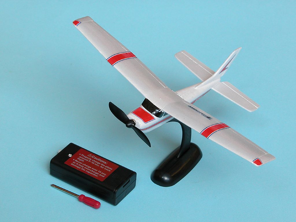Poprvé jsem se se superkondenzátorem osobně setkal v roce 2008 v malých hračkách, dvou modelech letadélek s rozpětím asi 20 cm, které dovážela firma Pelikán. Uvnitř byl kondenzátor 3 F / 2,7 V o hmotnosti 1 g, jehož vývody současně tvořily kontakty pro nabíjení, dál miniaturní vypínač a stejnosměrný motor z vibračního vyzvánění mobilů s vrtulkou. Model samotný byl dutý, tenká skořepina odstříknutá z extrudovaného polystyrénu. Dodávaný „nabíječ“ nebyl ničím jiným než pouzdrem na dvě tužkové (AA) baterie s vyvedeným konektorem.