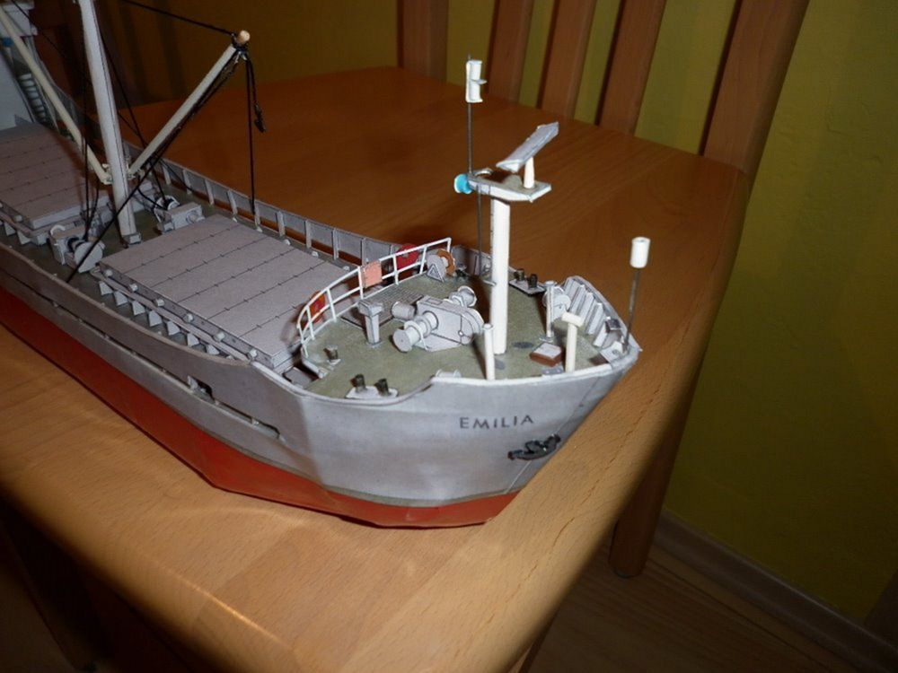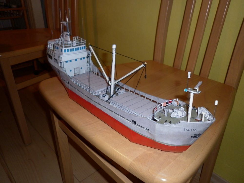 V roce 2010, při hledání co nového a při nápadu, že to musí být námořní nákladní loď, jsem narazil v polském zásilkovém obchodě GPM-modele kartonowe na model pobřežní lodi Emilia. Při podrobnějším hledání, zda existuje více informací o této lodi ve skutečnosti, jsem ji našel na stránkách pana Syrovátky. Ten ji stavěl klasickým způsobem a moc pěkně zdokumentoval stavbu. Poslal jsem mu dotaz na plánek a po naší domluvě dorazil poštou. Ihned jsem se potopil do studia plánu a poté to nechal zdravě uležet.