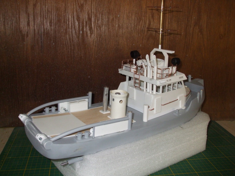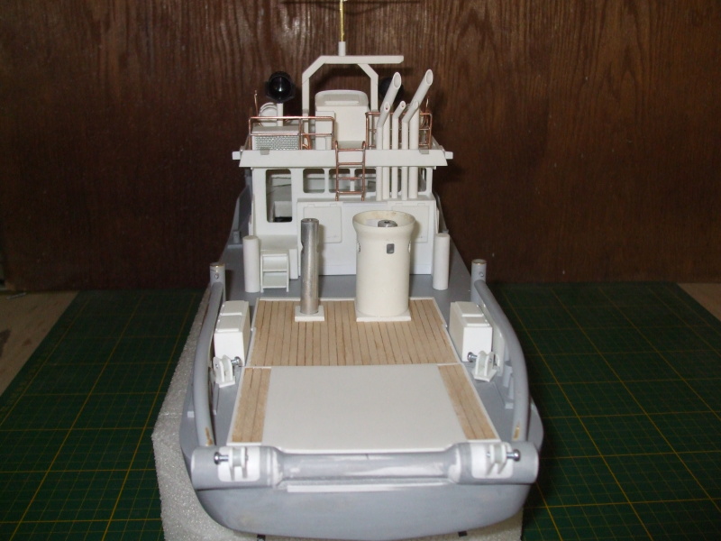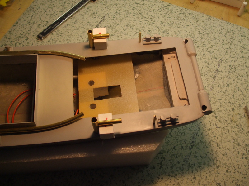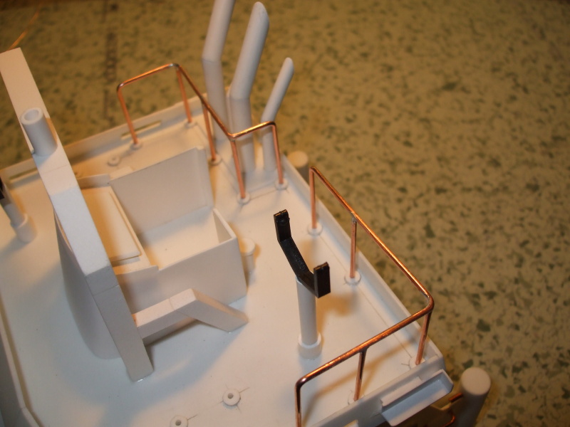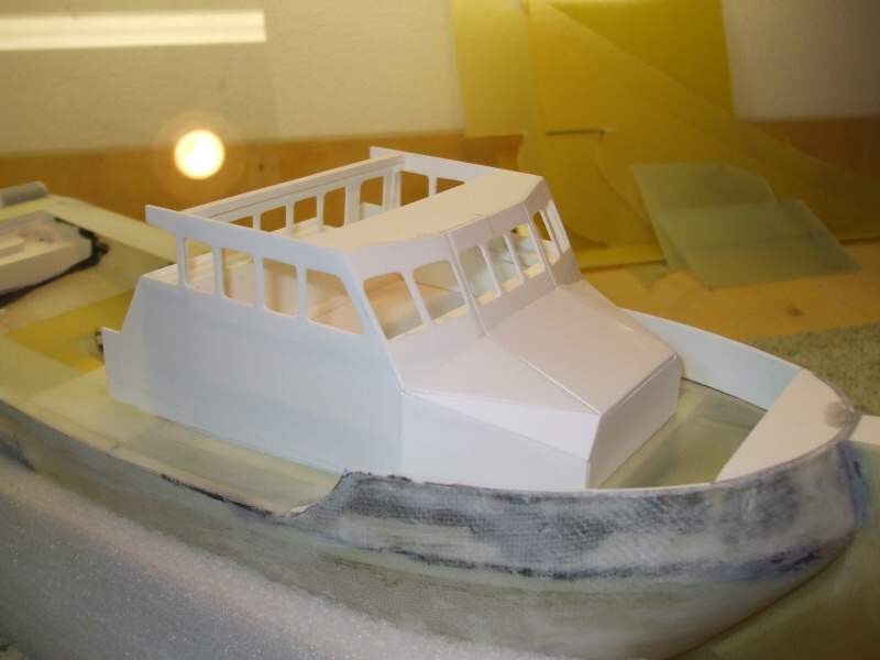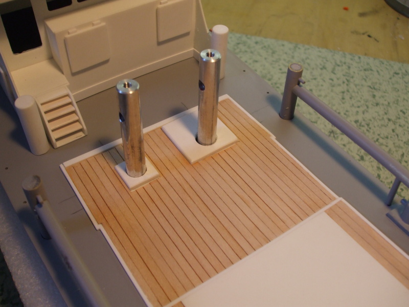 Na střechu kabiny přidána polokabinka na ovládání lodě a stojina stožáru. Z několika trubek jsou udělány komínky nebo co to vlastně všechno je. Asi bych se měl někde podívat a nastudovat názvosloví co se jak nazývá.