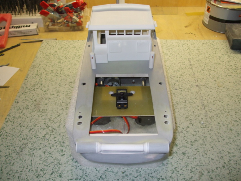 Kabina je udělána z 1,3mm silného PSH a lepena vteřinovým lepidlem.